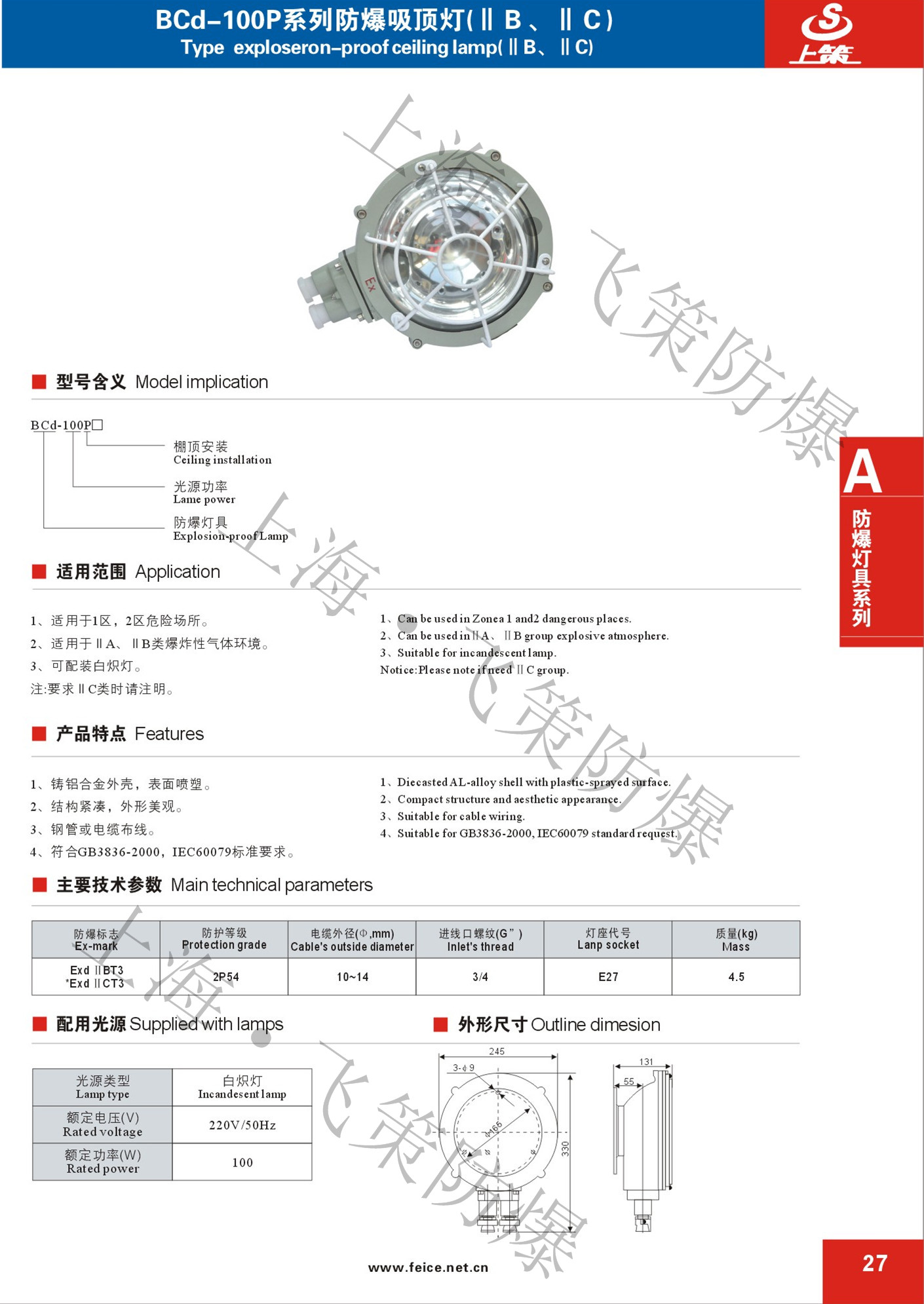 BCd-100P系列防爆吸頂燈(‖B、‖C)