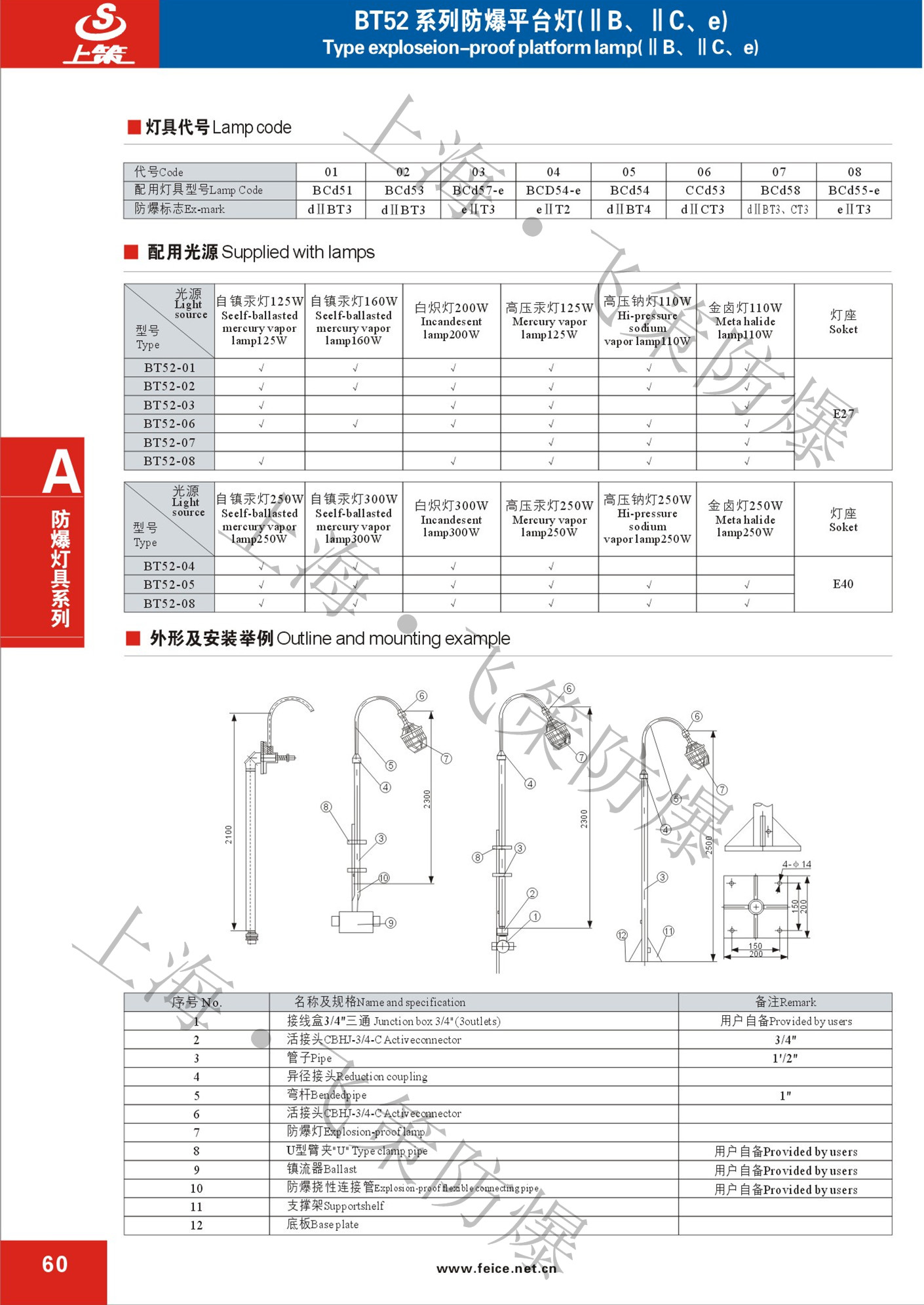 BT52系列防爆平臺(tái)燈(‖B、‖C、e)