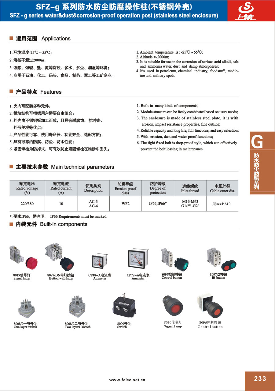 SFZ-g系列防水防塵防腐操作柱(不銹鋼外殼)