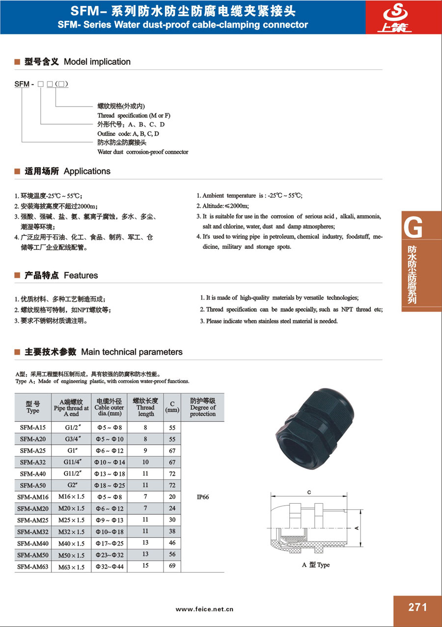 SFM-系列防水防塵防腐電纜夾緊接頭